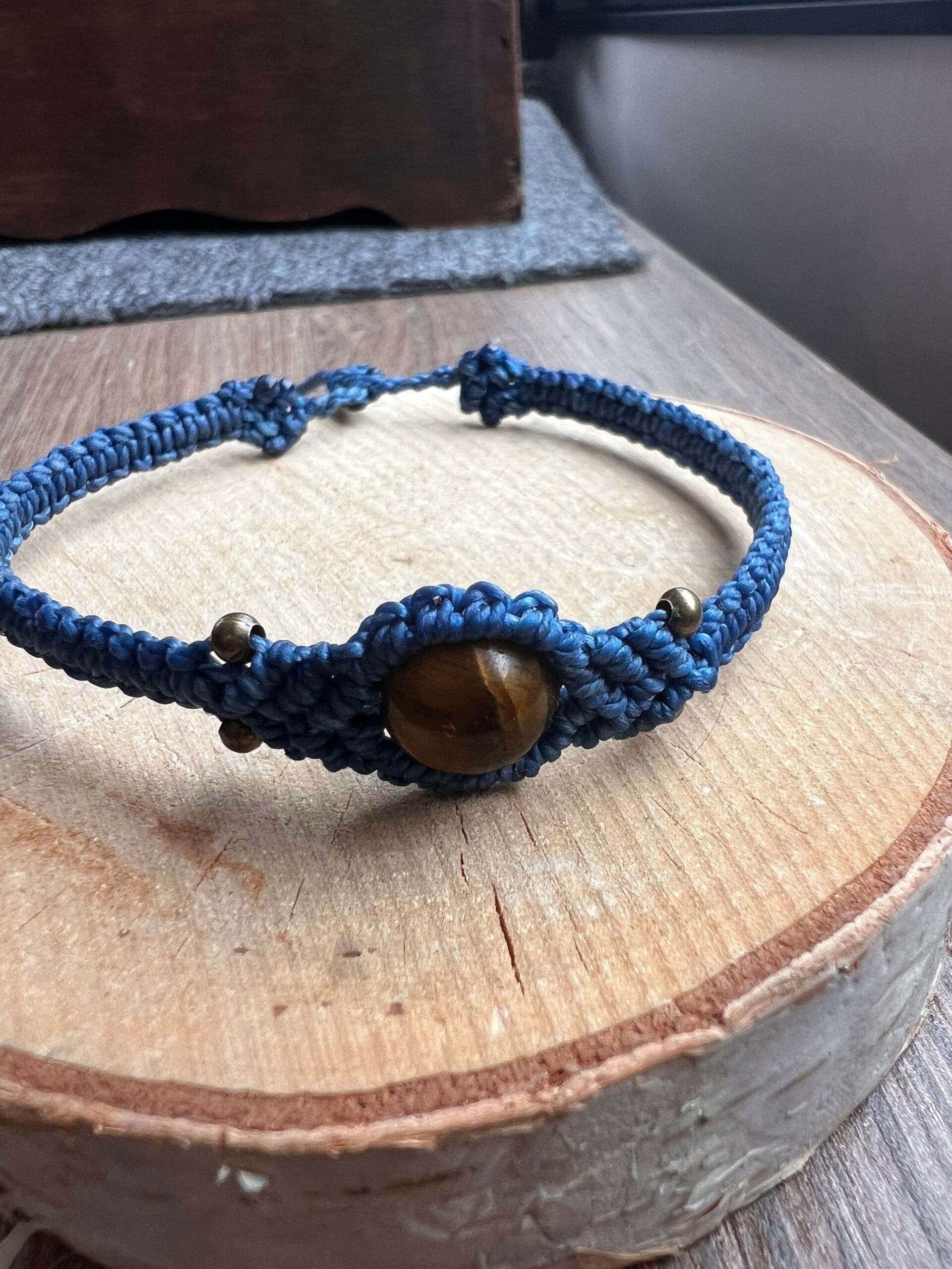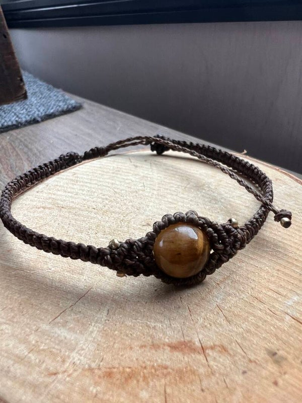 Au centre, une perle en œil de tigre de 8 mm : pierre naturelle connue pour son pouvoir de protection et sa force intérieure.
