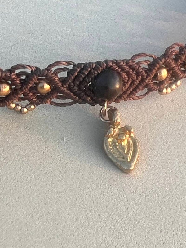Collier « cœur sacré » en micromacramé et perles de laiton