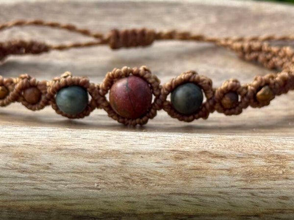 Deux bracelets tissés à la main en micro-macramé, symboles d’ancrage et d’harmonie.